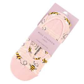 Bees Stripes Invisible Footsie Socks Dusky Pink & Cream