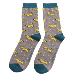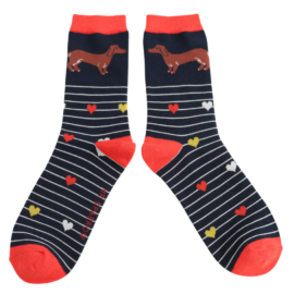Sausage Dogs & Stripes Socks Denim