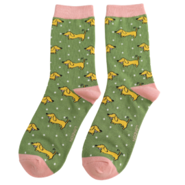 Sausage Dogs & Stripes Socks Green