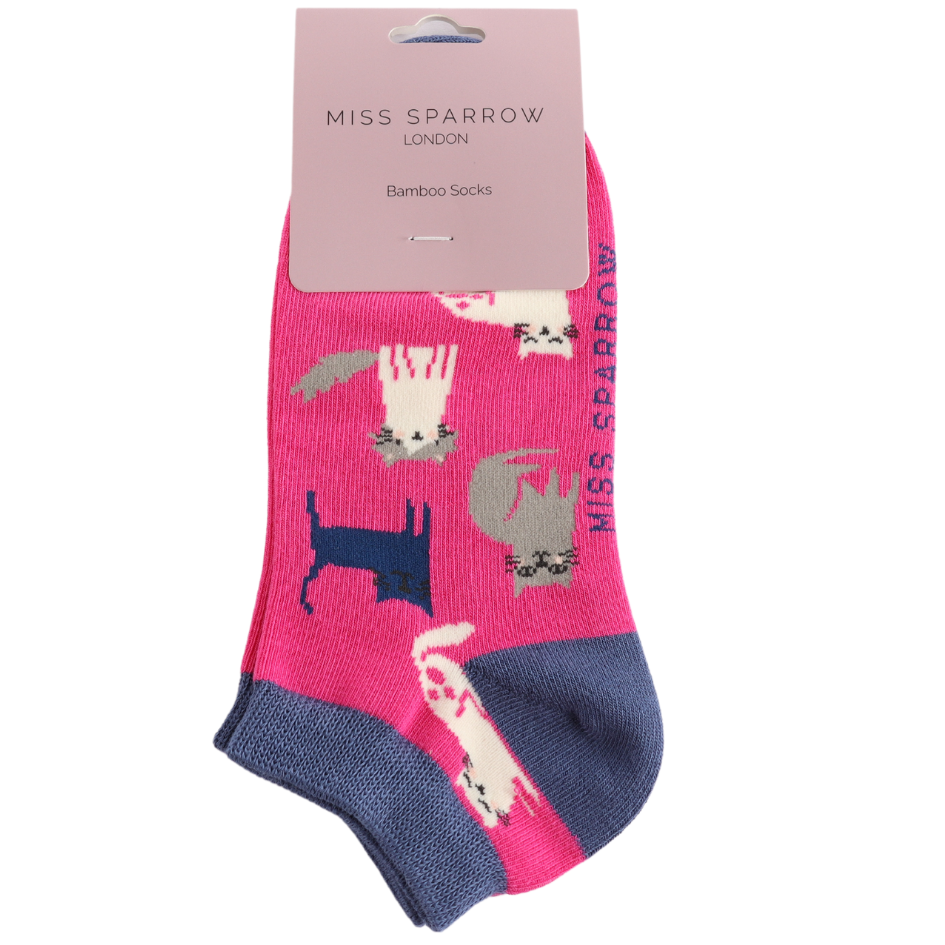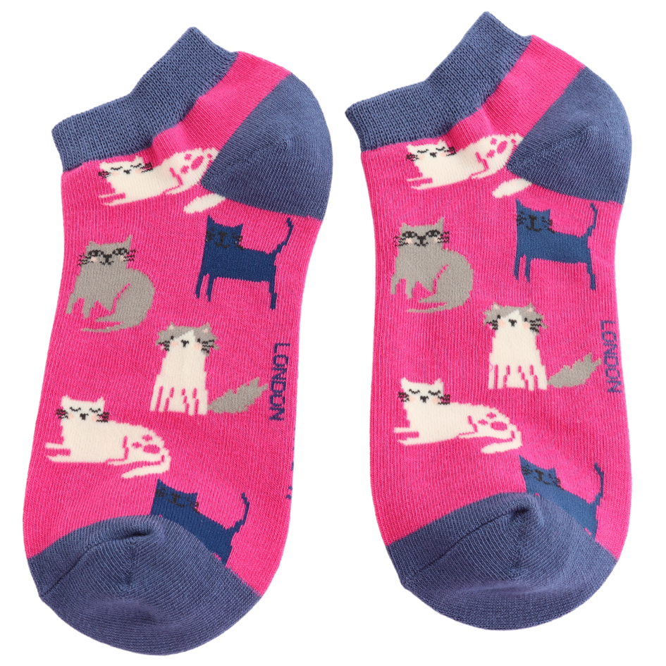 Cute Kitten Trainer Socks Hot Pink