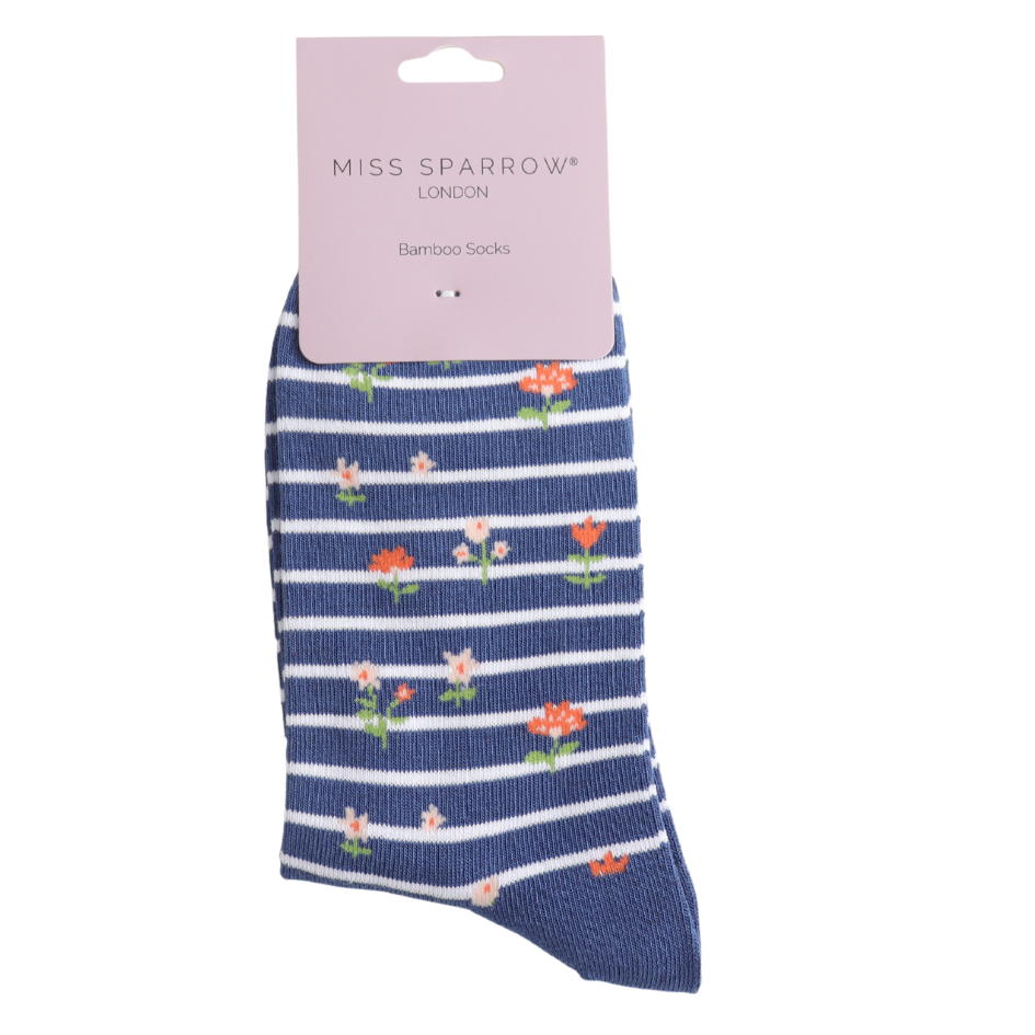 Floral Stripes Socks Navy