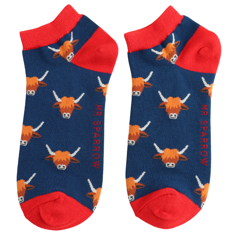 Men’s Highland Cows Trainer Socks Navy