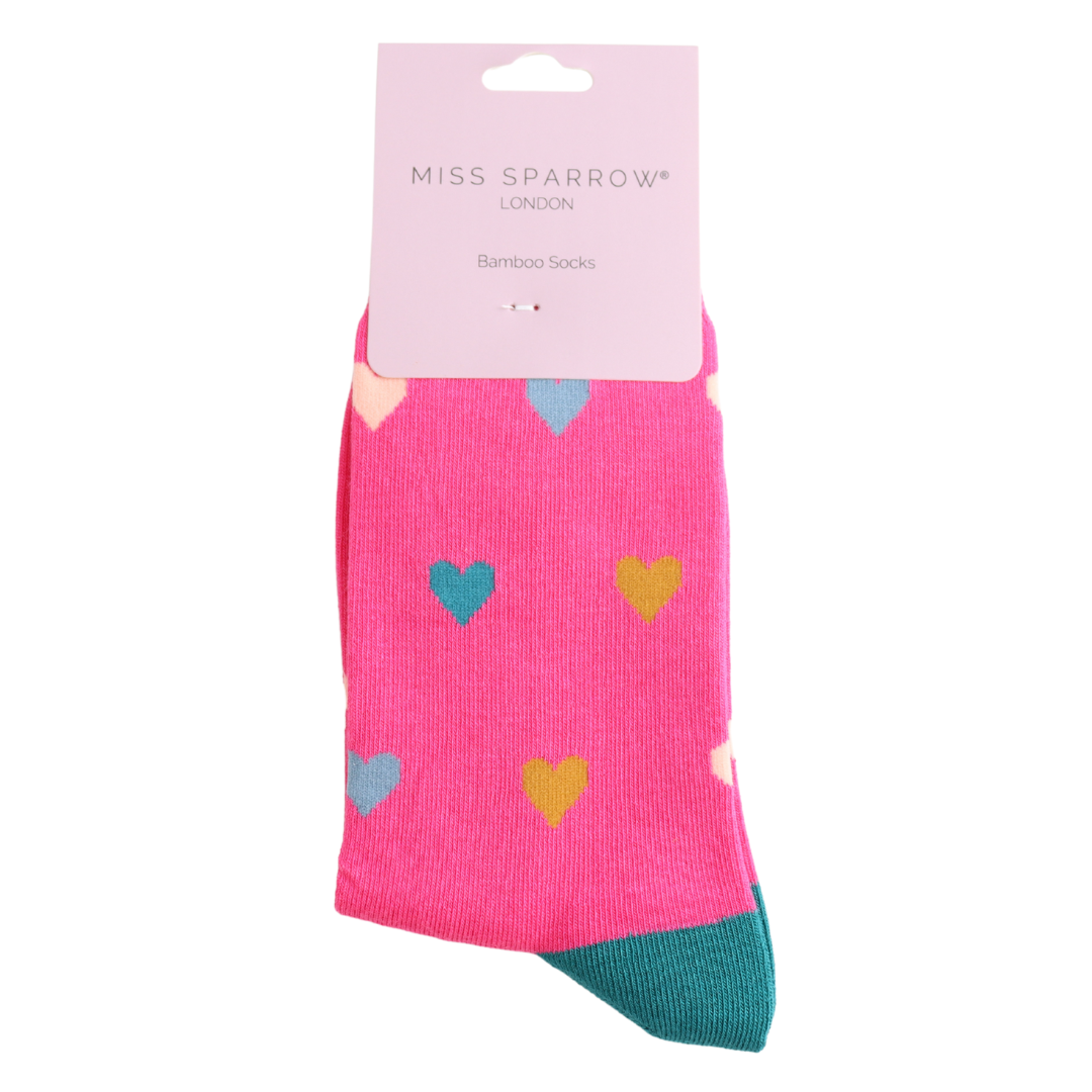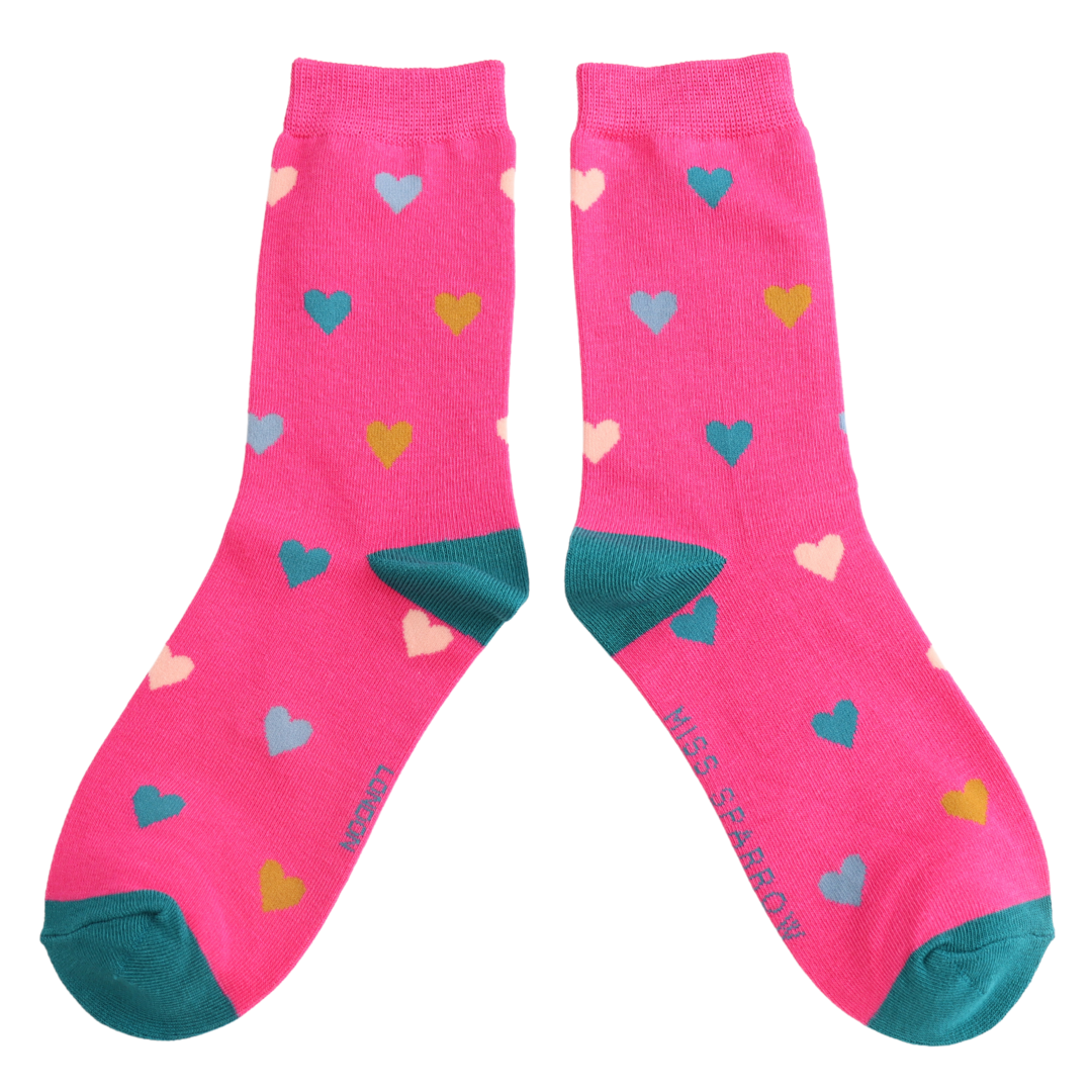 Multi Hearts Socks Hot Pink