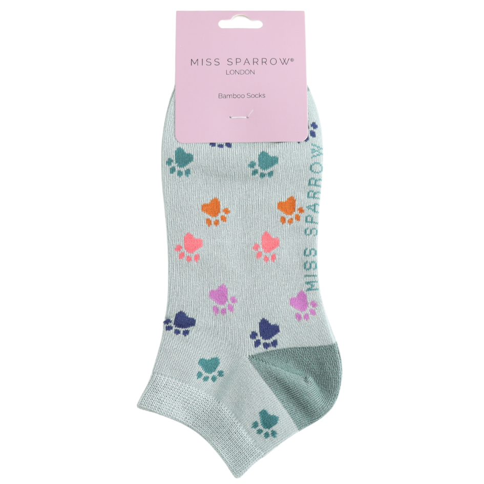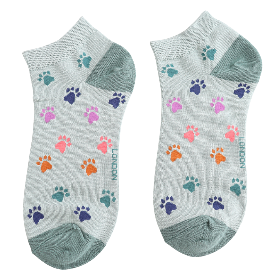 Multi Paw Prints Trainer Socks Duck Egg