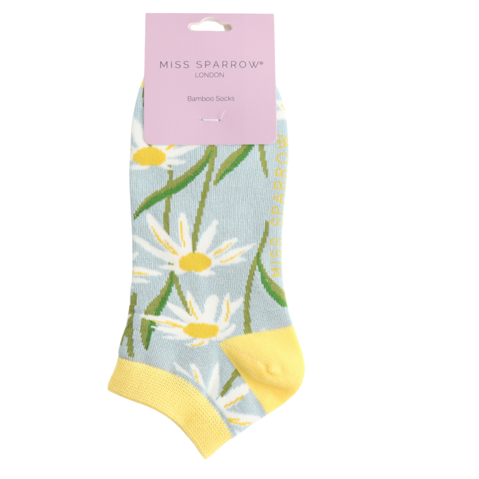 Oxeye Daisies Trainer Socks Duck Egg