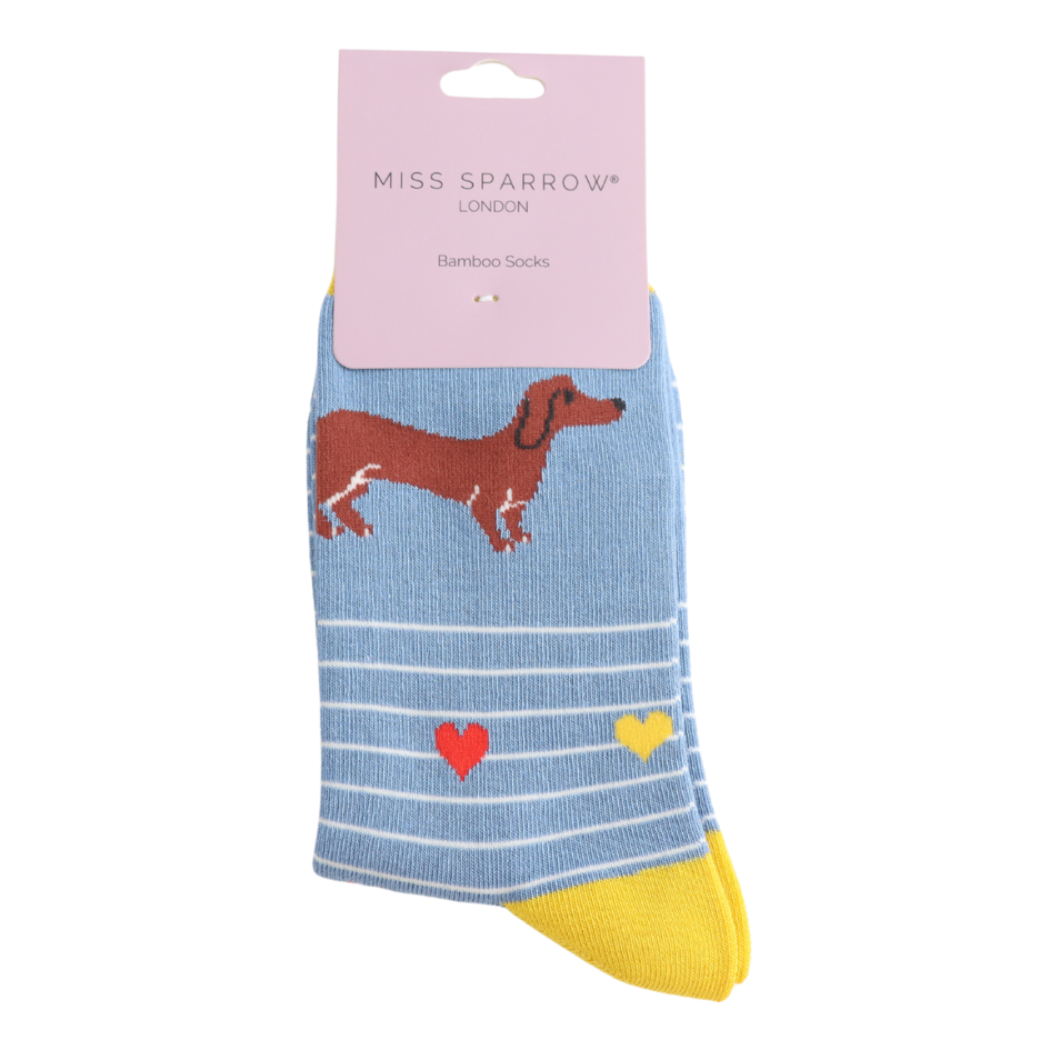 Sausage Dogs & Stripes Socks Denim