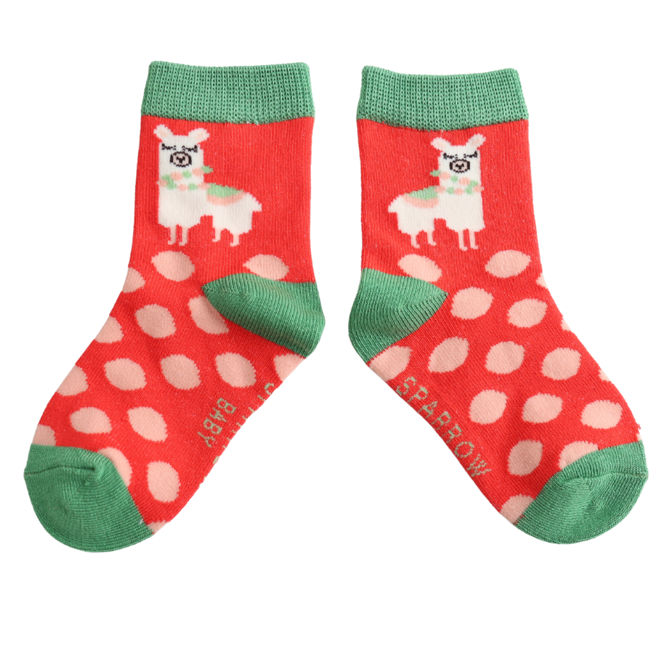 Sparrow Baby Llamas & Spots Red 4-6Y