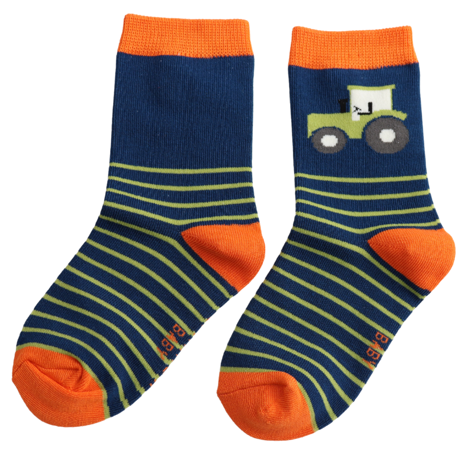 Sparrow Baby Tractor & Stripes Navy 4-6Y