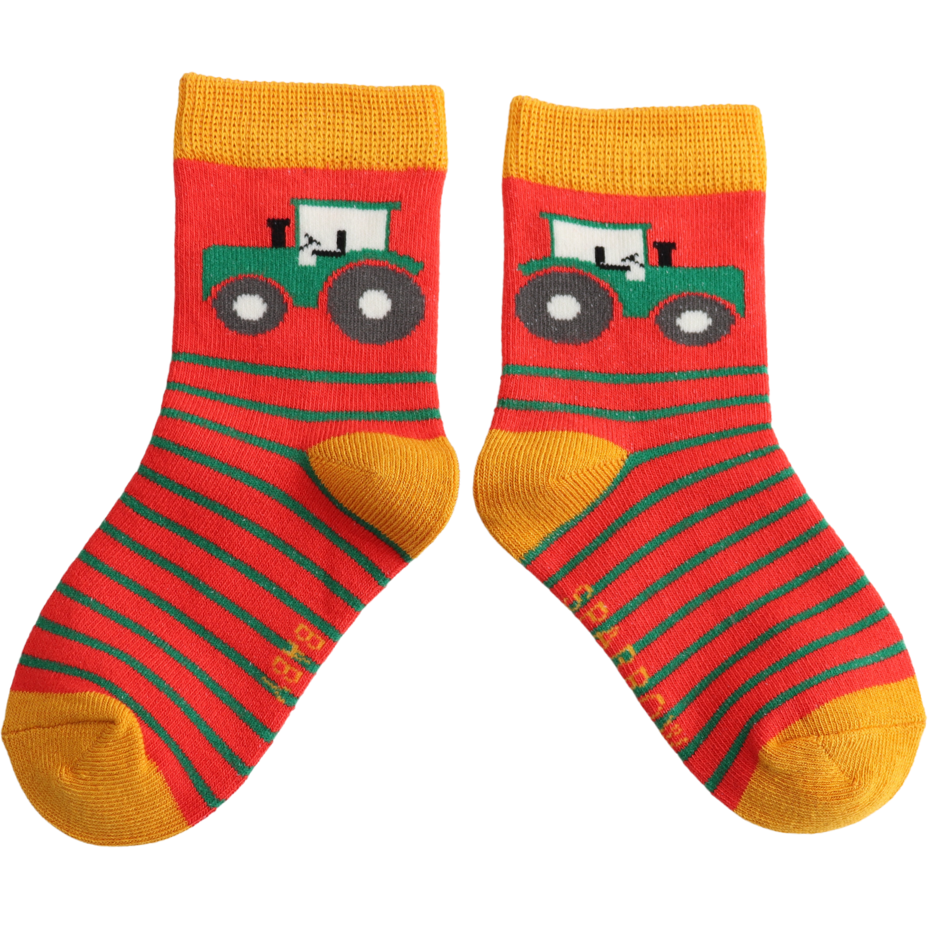 Sparrow Baby Tractor & Stripes Red 2-3Y